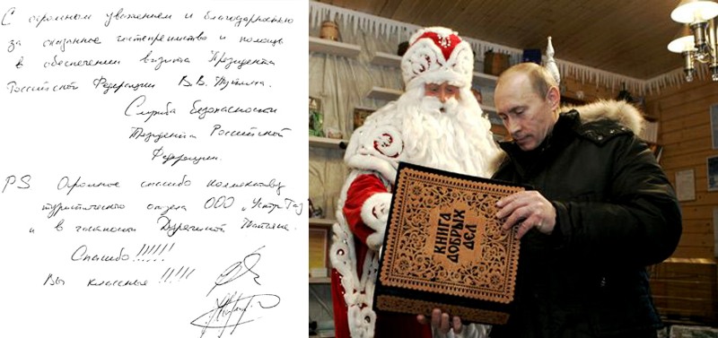 После конференции с губернатором Вологодской области Позгалевым В.Е. Владимир Владимирович посетил резиденцию Деда Мороза, а ночью его кортеж прибыл на Набережную Устюга к Прокопьевскому собору. После праздничной литургии Президент прибыл в Вотчину и остановился в гостинице «УстюгГаз». 7 января визит Президента РФ В.В. Путина в Великий Устюг был завершен.